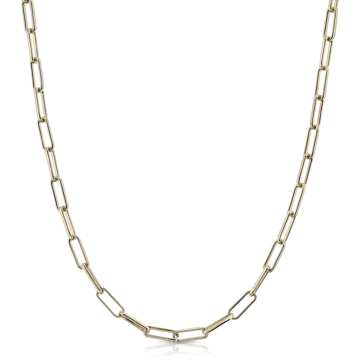 Elevate your style with our Elongated Link Chain, designed for the fashion-forward minimalist and celebrated as one of our top sellers. Embrace its simple sophistication by wearing a single chain or make a bolder statement by layering multiple chains at varied lengths. Personalize your look effortlessly with charms that reflect your unique flair.