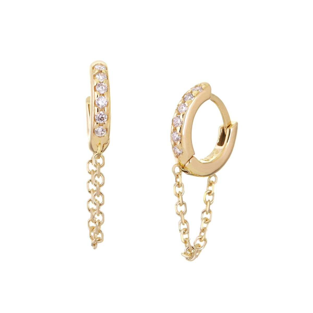 Add the 10mm Diamond And 14K Gold Huggies With Chain to your lineup; engineered for balance and shine so every look—casual, corporate, or cocktail—lands on point.