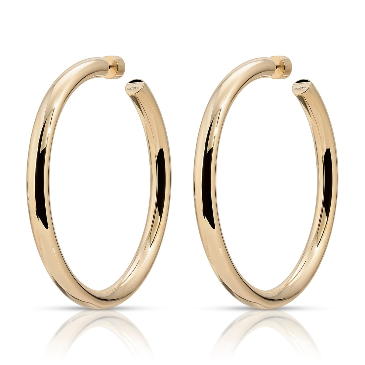 Icon energy, everyday ease. The 2.5" Kelly Hoops frames the face with a modern hoop line and catches light from every angle. Wear them with tees, tailoring, and after-dark edits.