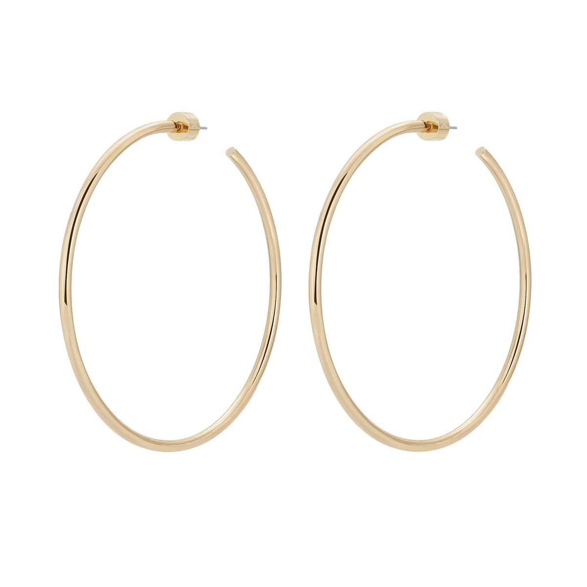 Make the 2.5" Ultimate Hoops your daily finisher; style them solo or stacked and let the glow sharpen denim, dresses, and tailored edits alike.