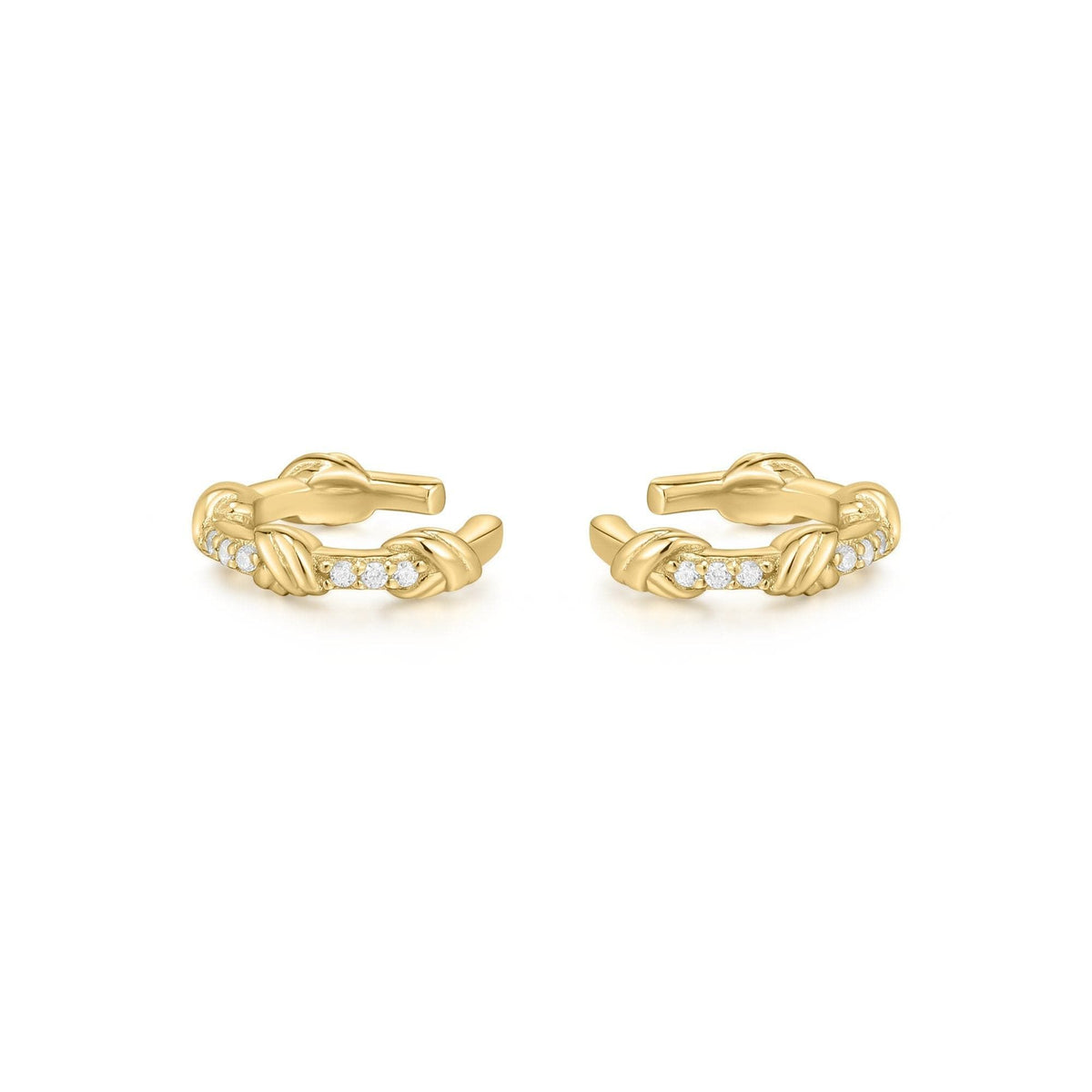 Clean lines, high voltage. The CZ Thin Knotted Ear Cuff frames the face with a modern hoop line and catches light from every angle. Wear them with tees, tailoring, and after-dark edits.