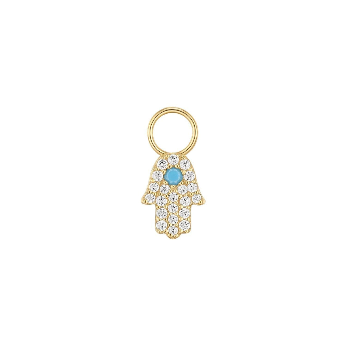 Own the glow—slide on the CZ & Turquoise Hamsa Hoop Charm and move from weekday rush to weekend plans with luminous edge and zero styling calculus.