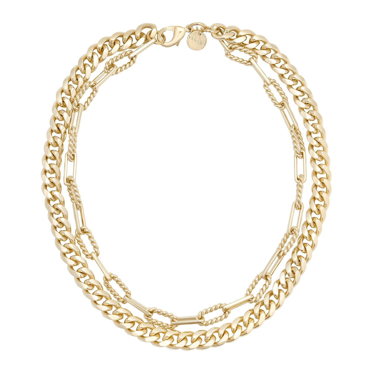 Our Double Layer Talia Necklace is an exquisite ensemble, seamlessly merging a bold, thicker curb chain with our stunning alternating twisted link chain for a striking layered effect. Elegantly secured with a reliable lobster clasp, this necklace offers both style and functionality.