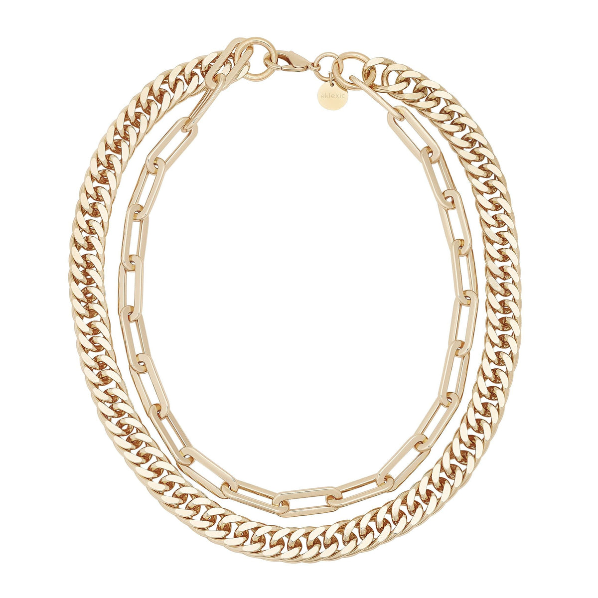 Introducing the captivating Double Layer Wren Necklace, a striking statement piece crafted to enhance any ensemble with its unique double-layer design. The bottom layer features an elegant wider Curb Chain, paired with a dazzling XL Paper Clip Chain on the top, all secured with a graceful lobster clasp. This eye-catching layer wren necklace is designed to be a true showstopper, capturing attention wherever you go.