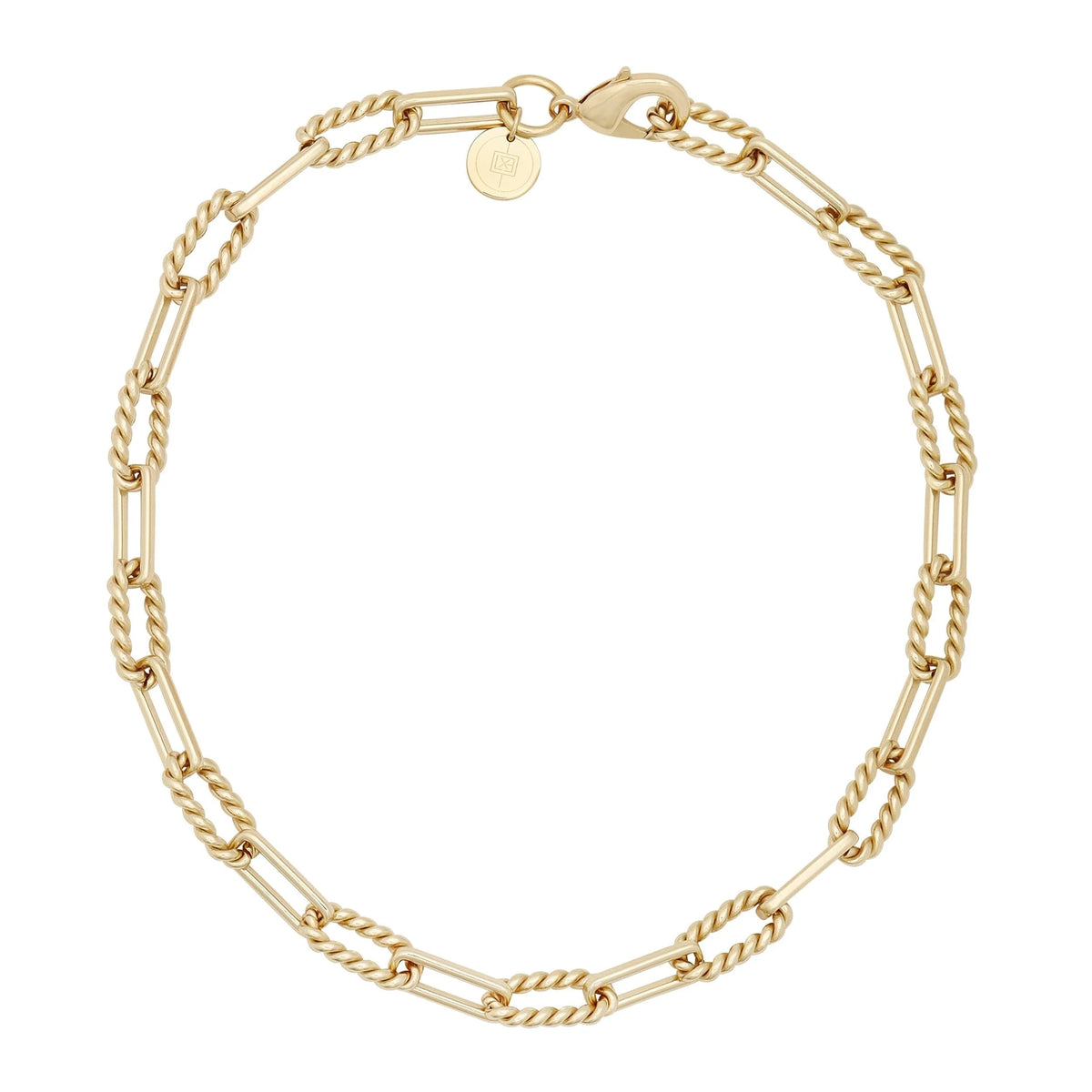 Twisted Sophistication, Modern Edge—the Enzo Necklace features an alternating twisted link chain (8.2mm wide, 18mm long) in recycled brass, available in 14K gold or rhodium-silver. Choose from 14.5" to 24" for your ideal fit.