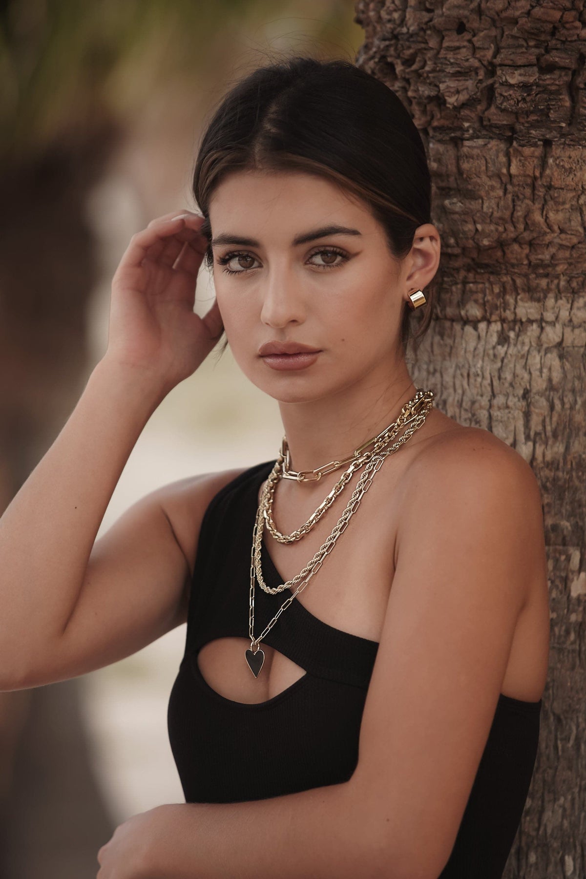 Bold Craft, Unmatched Character—the Gianni Necklace features a thick cut edge cable link chain (6.6mm wide, 9mm long) in 14K gold or rhodium-silver recycled brass. Available in lengths from 14" to 24" for versatile wear.