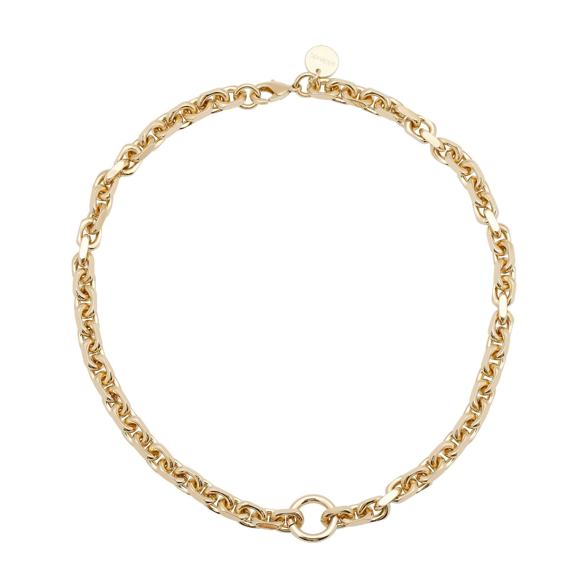 Contemporary Allure, Lasting Craft—the Gigi Necklace uses a cut edge cable link chain (6.6mm wide, 9mm long) and a striking circle accent (16mm diameter) for bold, modern style. Select 14K gold or rhodium-silver, with lengths from 14" to 24".