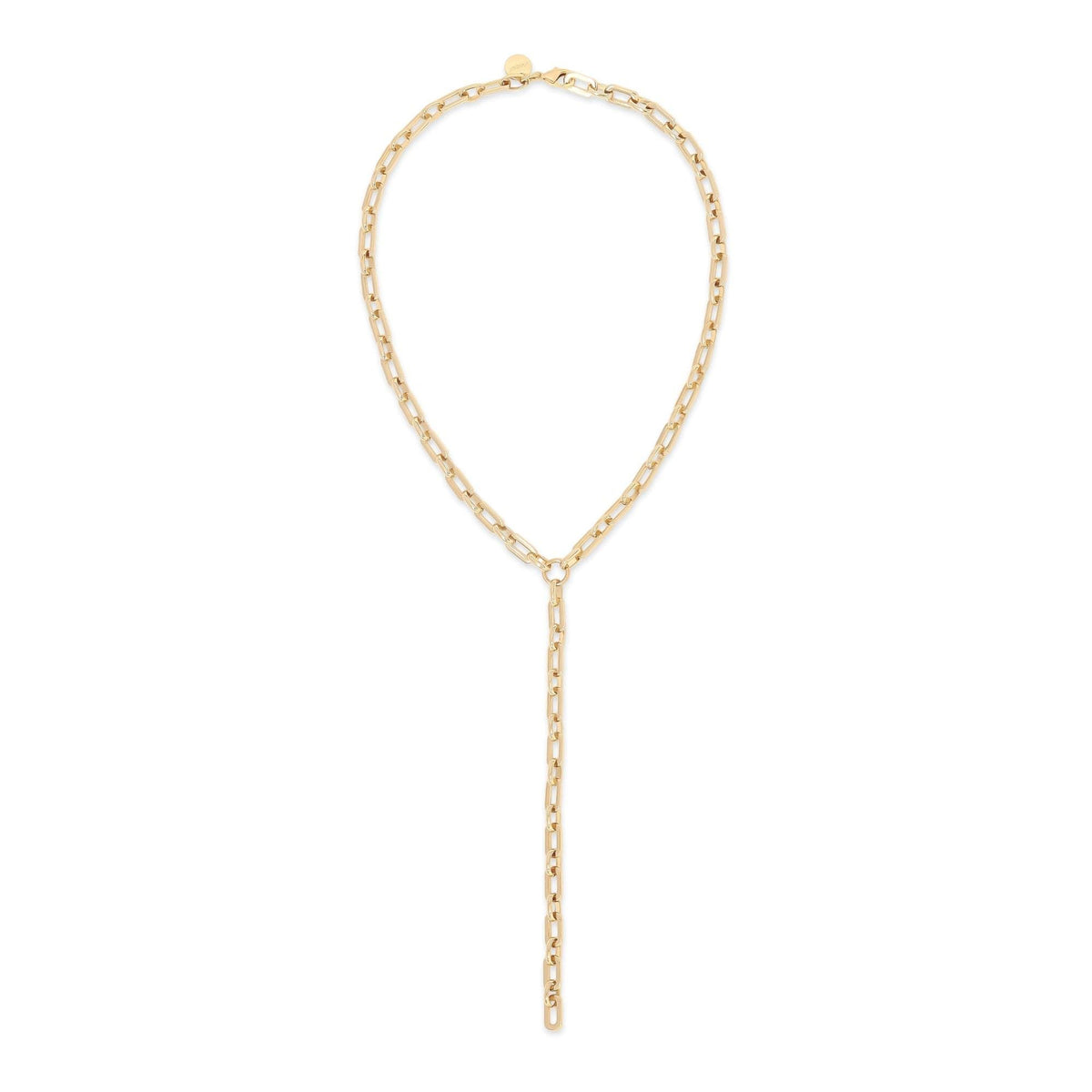 This lariat necklace is a perfect choice for individuals who appreciate fashion-forward designs made with responsible materials like recycled brass, ensuring you make a statement with every wear.