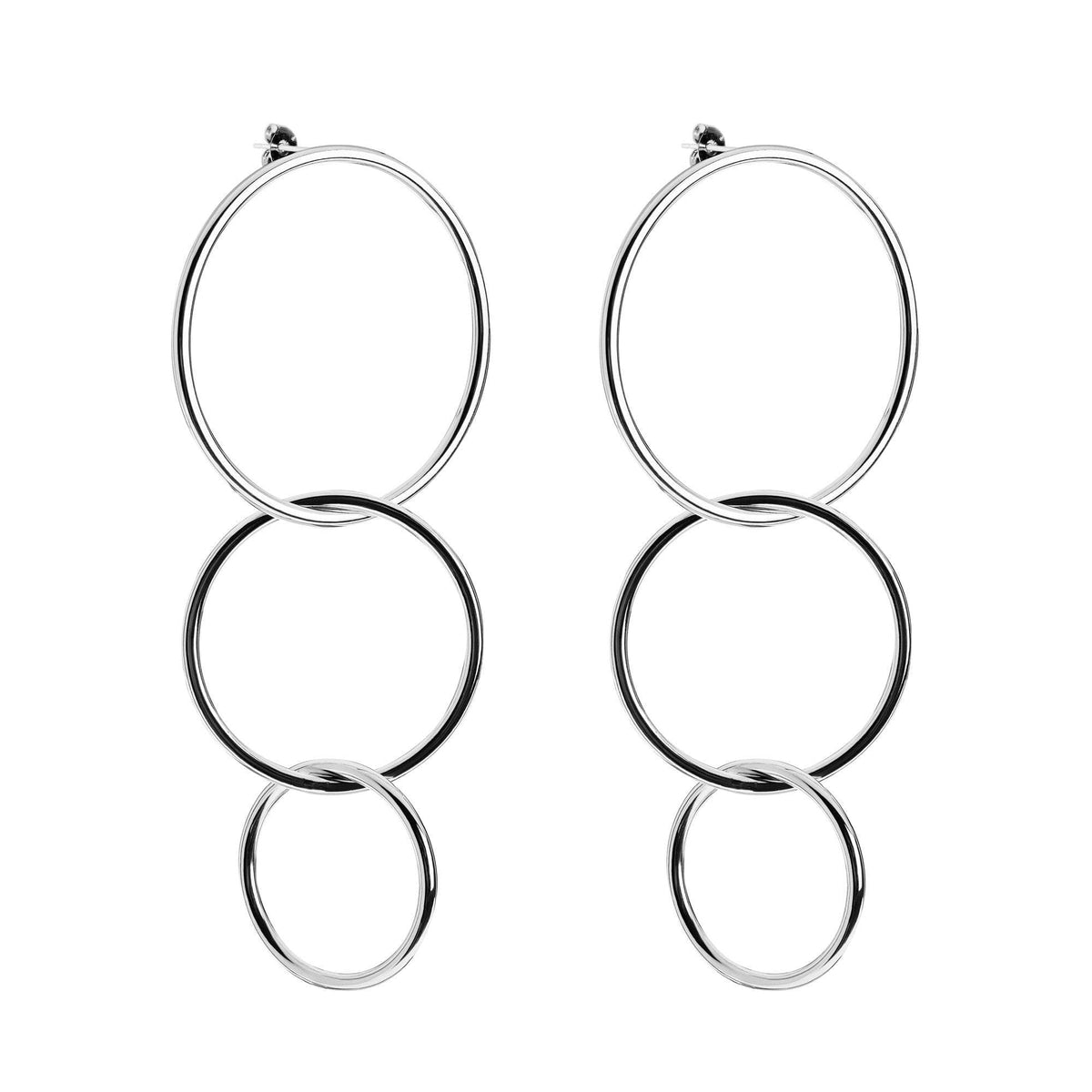 Put the Triple Interlinking Circle Drop Earrings in heavy rotation—clean, confident shine that powers every outfit from desk to dinner and everywhere after.