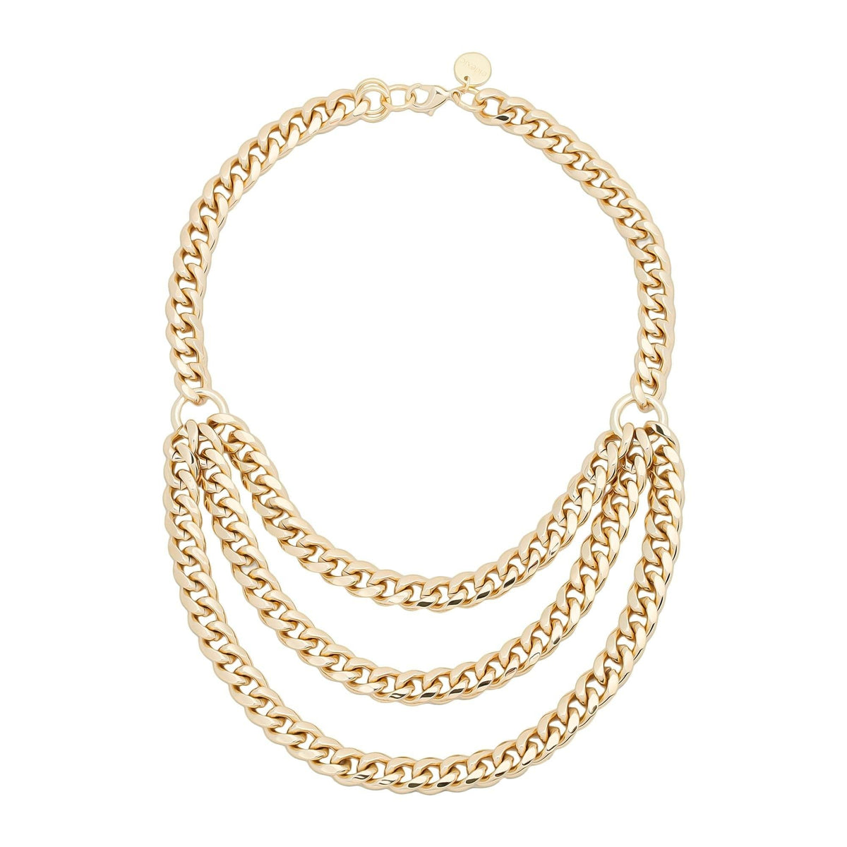 Eco-Friendly Glamour, Layered Perfection—the Triple Layer Curb Chain Necklace is made from recycled brass Cuban links, finished in 14K gold or rhodium and protected by a clear coating for lasting brilliance.
